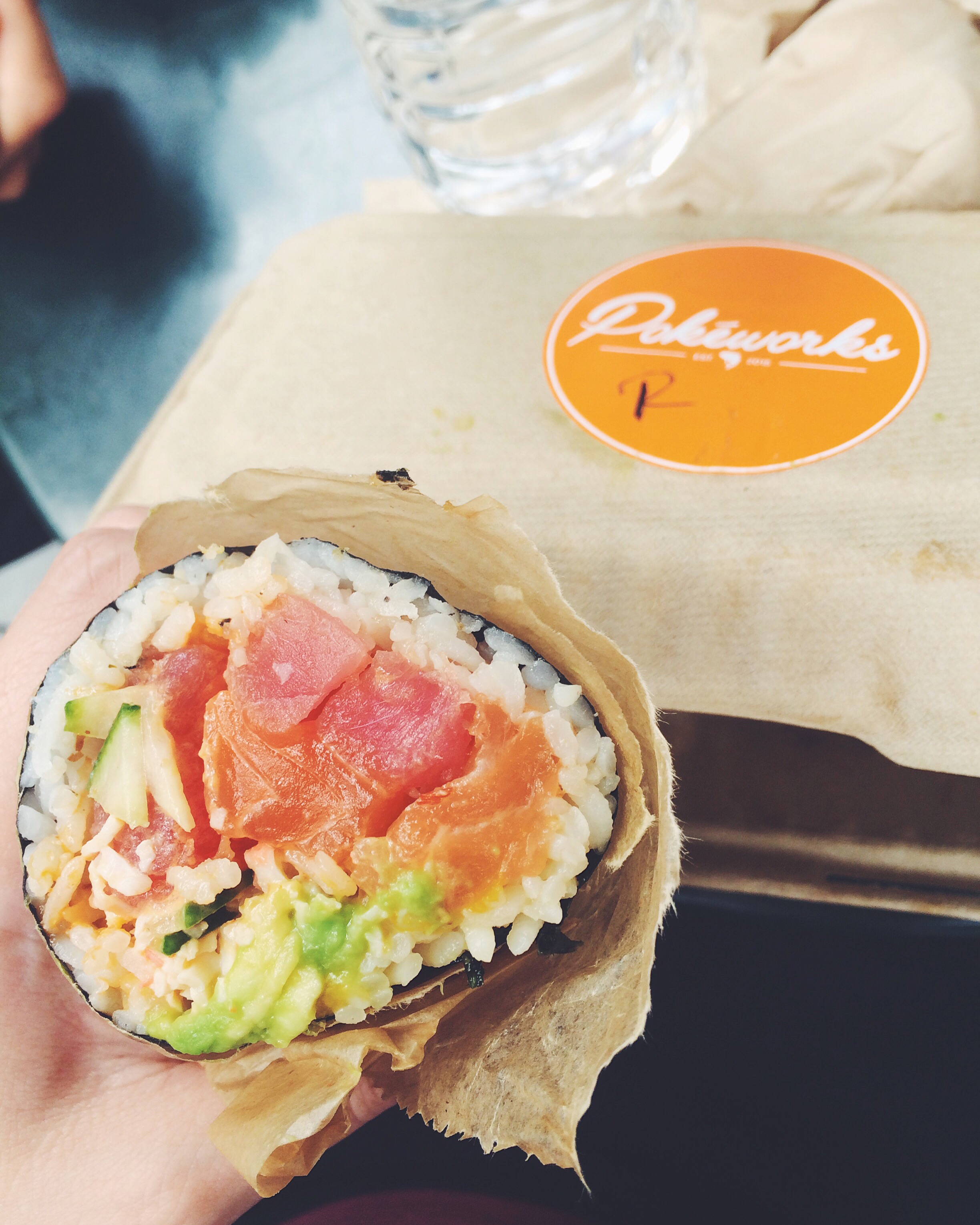 This trip we were able to hit two spots on the list. I am realizing that this list is going to take a long time especially since it’s keeps growing. Today we got lunch at Pokèworks on 7th and 37th. Burrito size sushi rolls!! The creation is the same as Chipotle where you have the option for a burrito, bowl or salad. Let me tell you, it was amazing. I highly recommend it. As expected avocado is extra but it’s totally worth the splurge for a SUSHI BURRITO. Oh and don’t forget the spicy mayo. We ate in Bryant Park which is only a few blocks away.