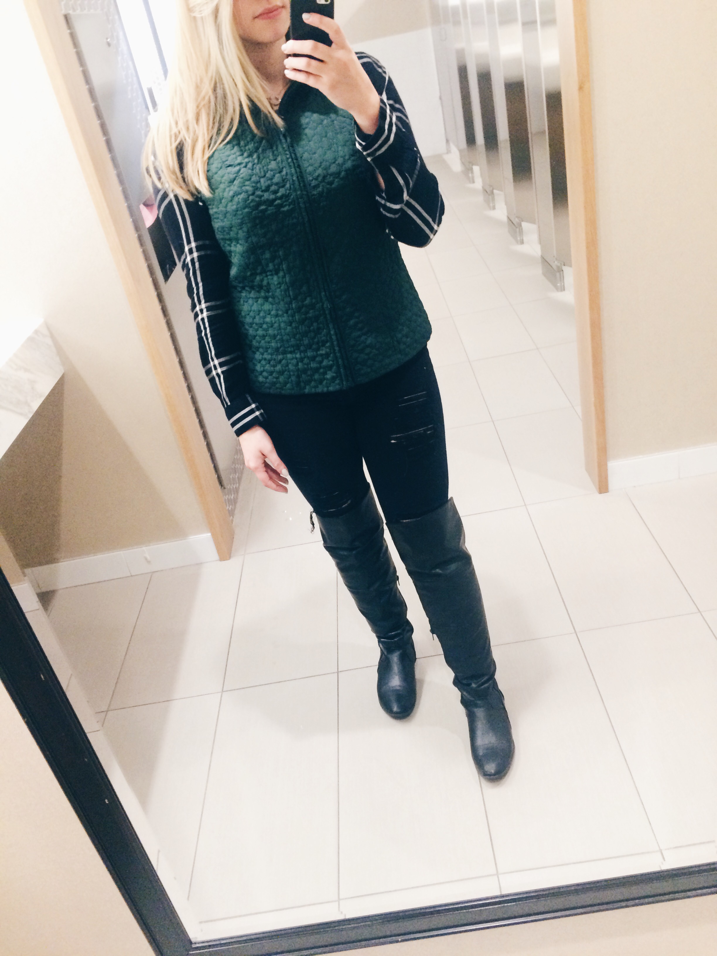 I love pairing vests over flannels, ultimate comfort. I love all color vests, but this green one really caught my eye, find a similar one here.