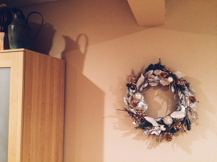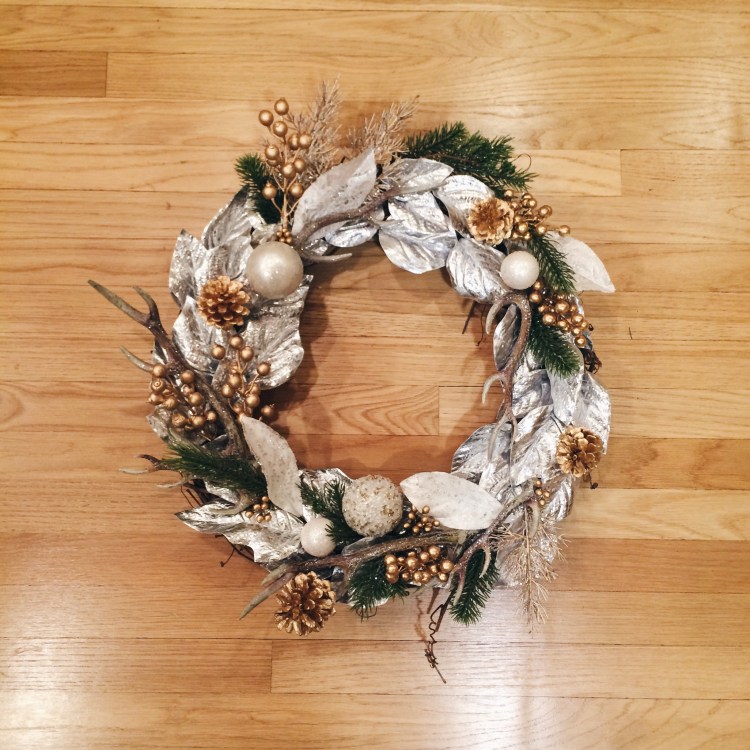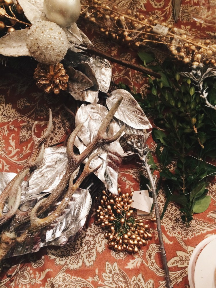 I picked up these really cool faux antlers and gold berries and hot-glued them on in different areas keeping with a clockwise rotation.