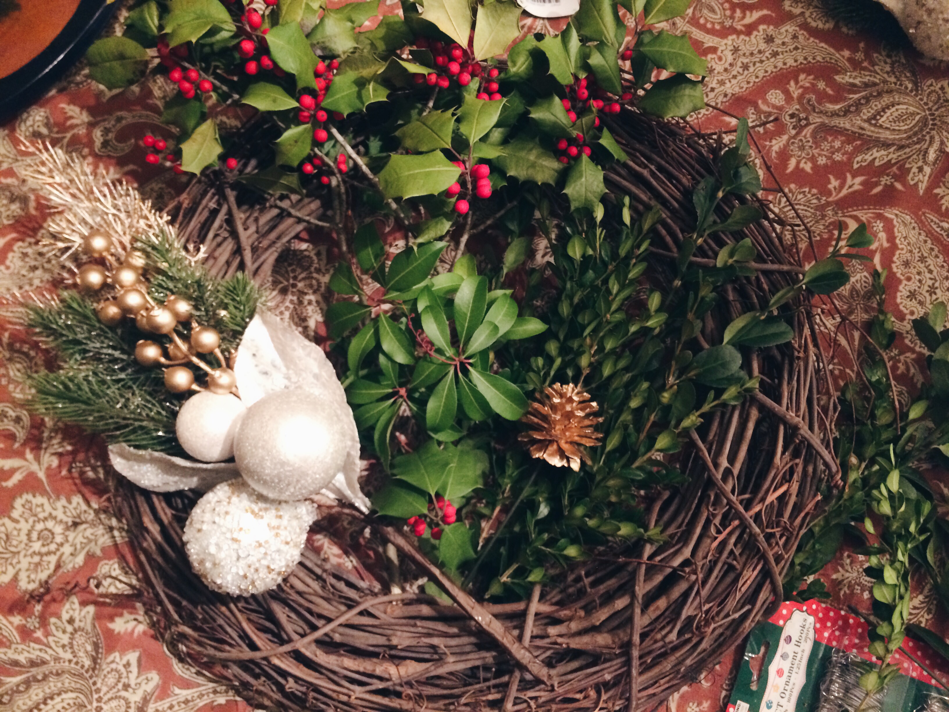 I love, love, love decorating for Christmas so when my mom asked if I wanted to DIY wreaths, I said yes! This wreath is super easy to make and cheaper than buying a pre made wreath, plus it’s more fun!