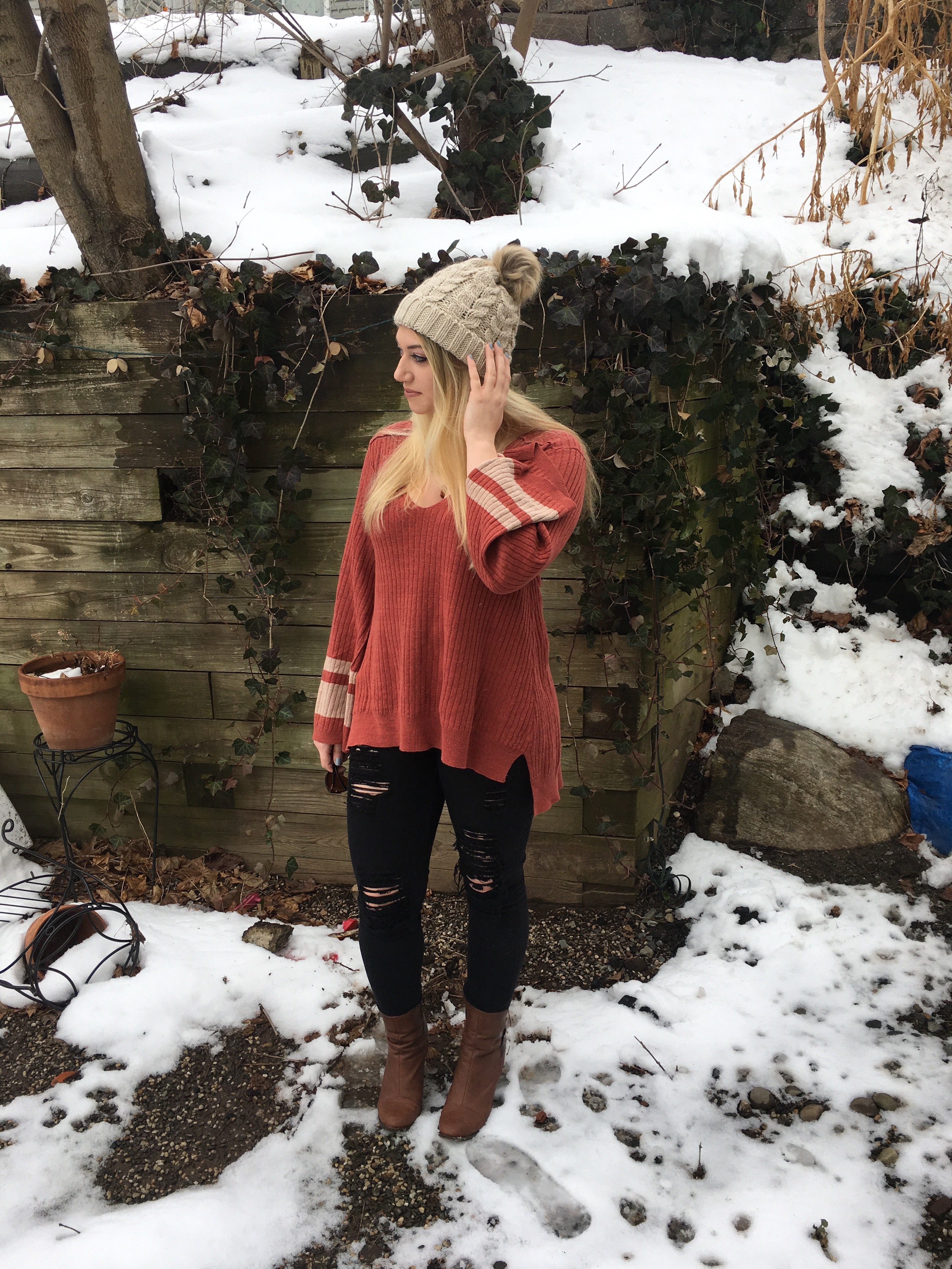 SWEATER similar| DENIM| BEANIE similar | BOOTIES