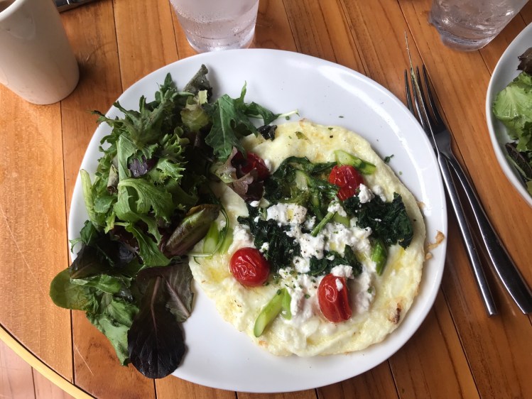 First course, country toast. Topped with avocado, baby greens, radishes and a poached egg – this dish was delish!